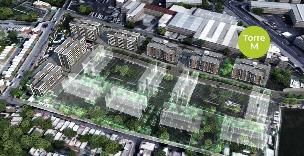El proyecto estará integrado por 15 edificios, cada uno cuenta con área de estacionamiento, elevadores y núcleo de escaleras de servicio.
